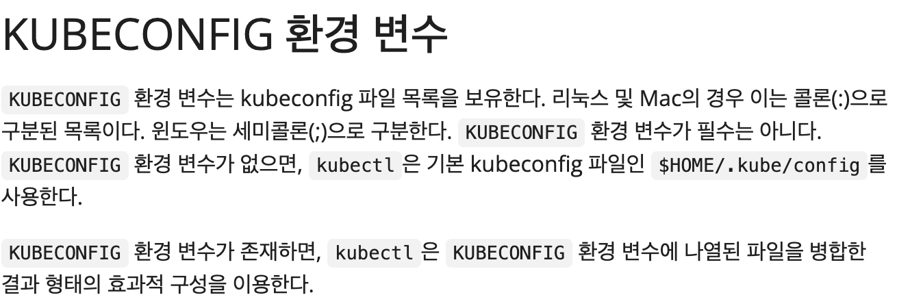 +) 이렇게 매번 kubeconfig 파일을 지정하기 싫으면 위에 캡처한 문서를 참고해 보자.