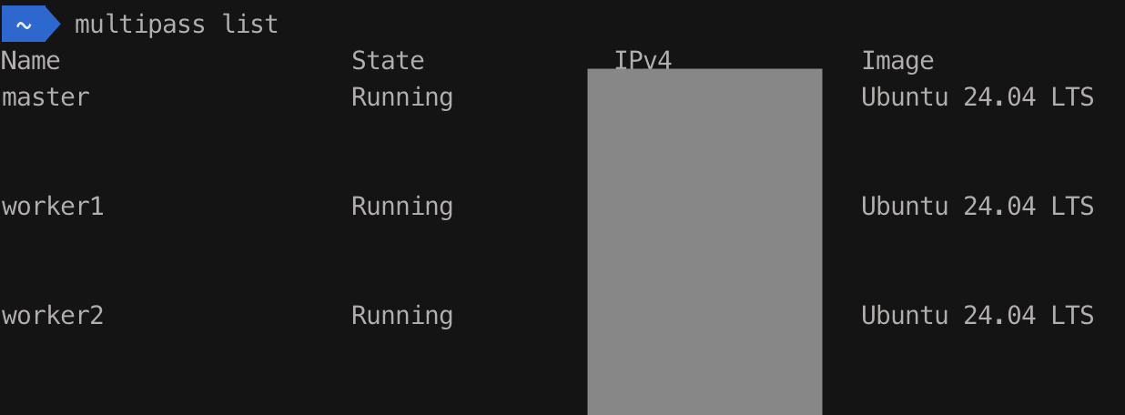 multipass launch --name worker2 --cpus 1 --memory 1G --disk 6G noble