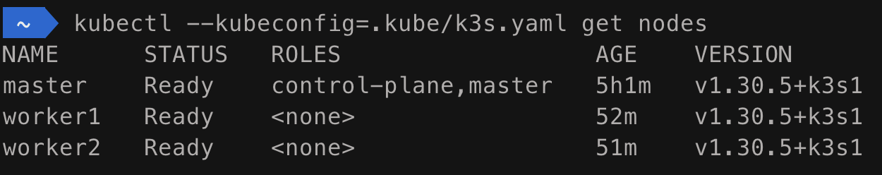 kubectl get nodes를 사용하면 모든 노드들의 상태가 잡힌다. 만약 정상적으로 설정됐다면 새로운 노드로 뜰 것이다.