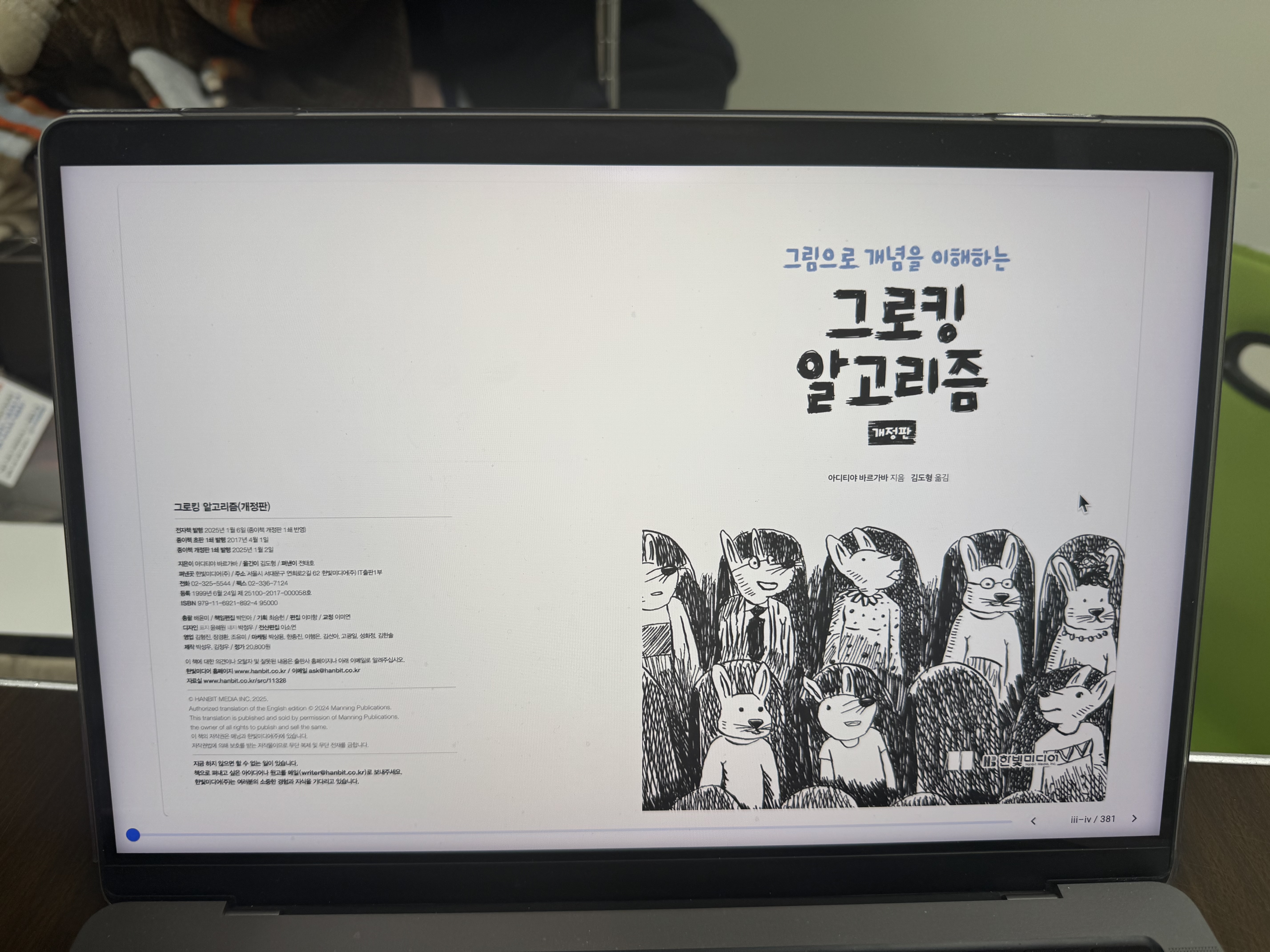 기본적인 자료구조과 대표적인 알고리즘이 그림으로 귀엽게 설명되어 있어서 재밌게 읽을 수 있습니다. 코드는 간단하게 파이썬으로 작성되어 있고 복잡할 수도 있는 실행 과정은 모두 시각화되어 있어서 직관적으로 이해하기 쉽습니다. 알고리즘을 이전에 공부해본 저는 알고리즘은 (조금 과장을 보태서 ㅎㅎ) 코드하고 그림만으로도 충분히 이해가 될 정도였습니다.