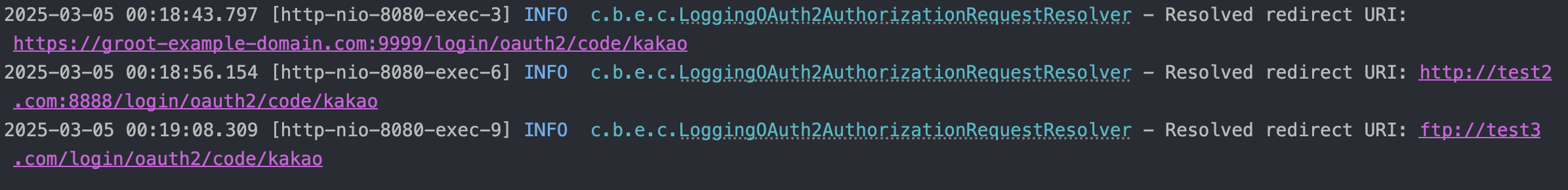 log.info("Resolved redirect URI: {}", req.getRedirectUri()); // 실행될 때 req의 redirectUri를 로그를 남긴다.