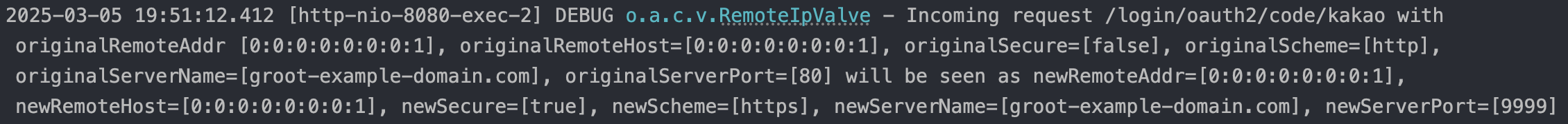 그래서 매번 Request마다 Spring Boot에서 헤더를 해석해서 baseUrl이 잘 설정했는지 oauth redirect-url을 찍어 봤습니다.
