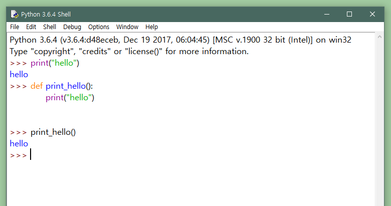 Julia Shell(REPL이라고도 함)은 Python Shell(아래 사진 참고)의 Julia 버전이라고 보시면 됩니다. Julia의 함수들을 선언하고 사용할 수 있는 Shell이라고 할 수 있습니다.