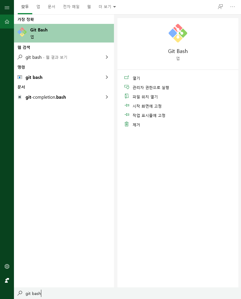 git-bash를 실행합니다.