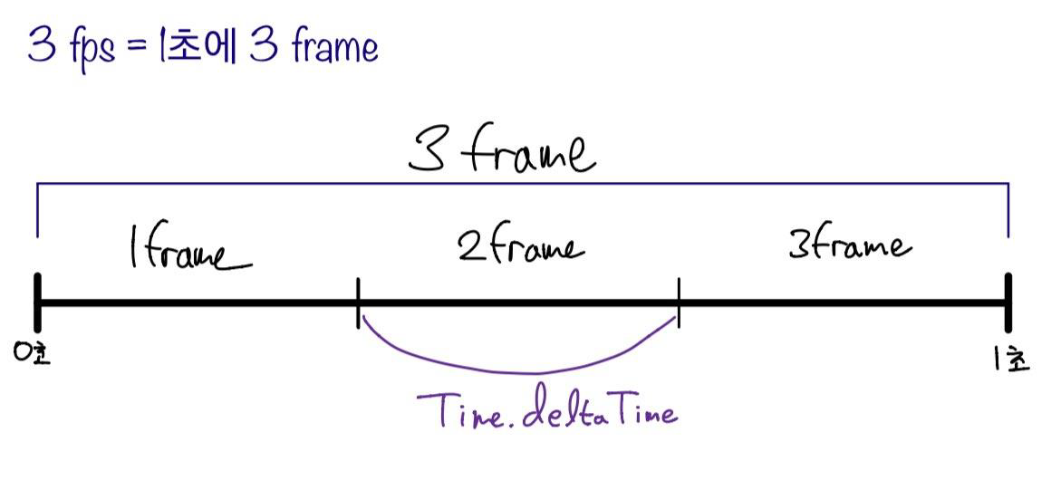 일단 Time.deltaTime은 뭘까요? 이전 프레임부터 현재 프레임이 일어나기까지 걸린 시간입니다.