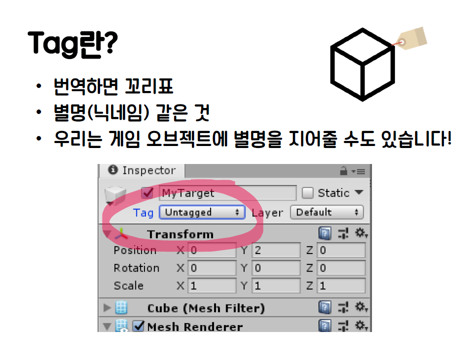 오브젝트에 태그를 달아봅시다.