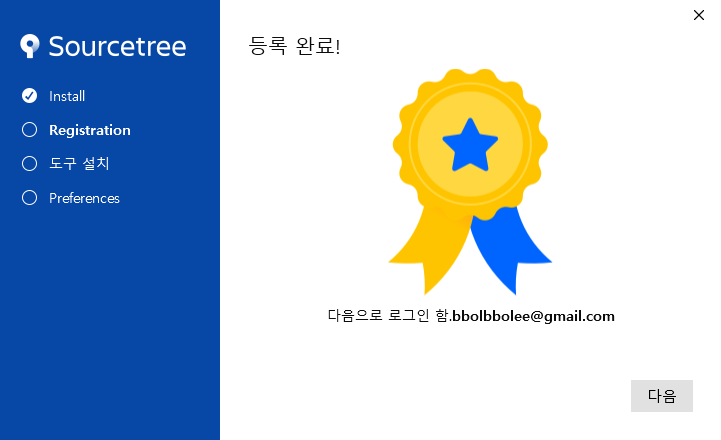 Bitbucket에 로그인하라는 인터넷 창이 열릴겁니다. 이 창이 자동으로 열리지 않으면 설치 프로그램 끄고 다시 시도해보세요.