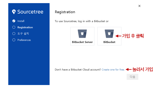 Source Tree를 사용하려면 Bitbucket에 가입해야 합니다.