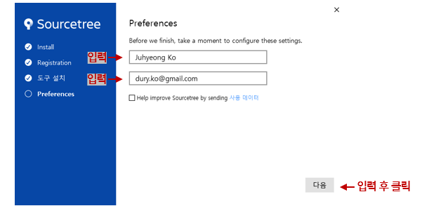 7. 사용할 이름과 이메일 입력