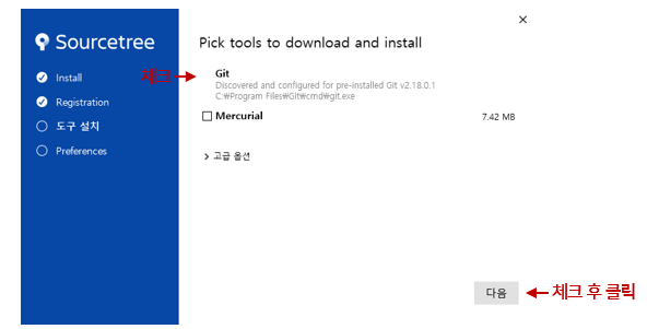 1. Source Tree 홈페이지 접속 후 다운로드한 설치 파일을 실행