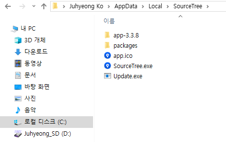 그럴 때 아래의 경로에서 숨은 SourceTree.exe를 찾아주면 됩니다.