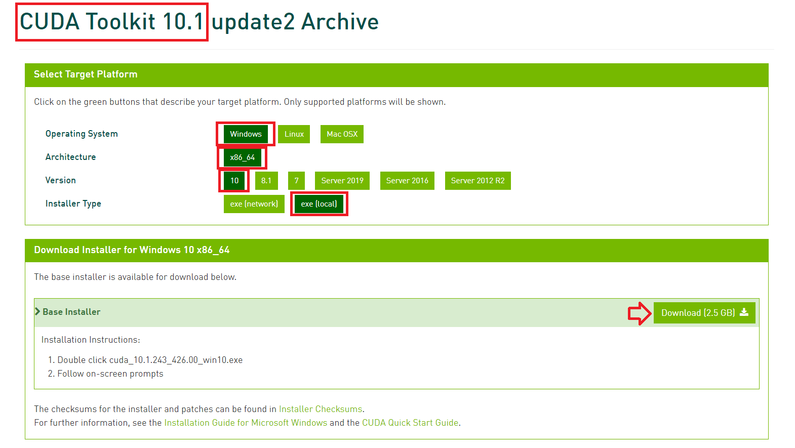 NVIDIA 사이트의 CUDA Archive에서 원하는 버전의 CUDA를 선택해서 다운로드한다.