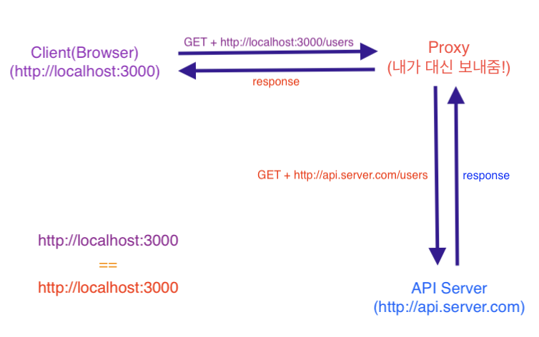 package.json에서 간단하게 proxy를 설정할 수 있다. 자세한 내용은 Velopert님의 글을 참고하자.