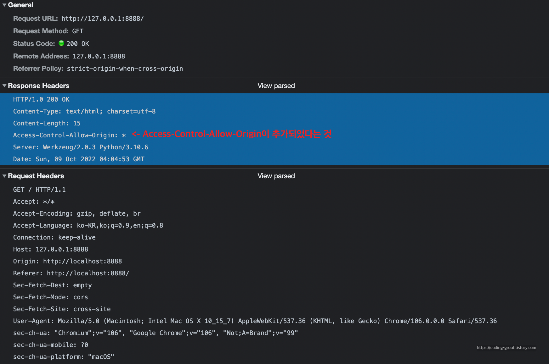 "Access-Control-Allow-Origin": "https://www.codinggroot.tistory.com",